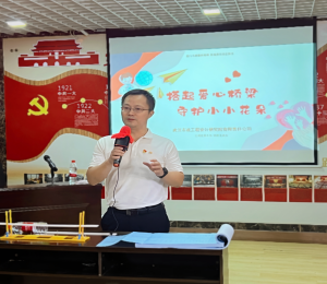 課堂后,姑嫂樹社區(qū)黨委書記周順生與“愛心花朵”教育服務(wù)中心的向老師代表愛心機(jī)構(gòu)和受助的困難家庭感謝武漢市政院對(duì)愛心事業(yè)的關(guān)注、對(duì)愛心機(jī)構(gòu)的所有困難家庭孩子的關(guān)愛,向武漢市政院敬贈(zèng)錦旗,對(duì)武漢市政院的社會(huì)責(zé)任感和家國情懷、擔(dān)當(dāng)精神表達(dá)敬意。