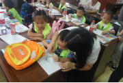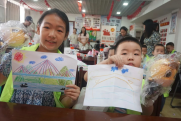 課堂中,小朋友們獲得了不少關(guān)于橋梁建筑的小知識(shí),利用捐贈(zèng)的文具畫出他們心目中的大橋。