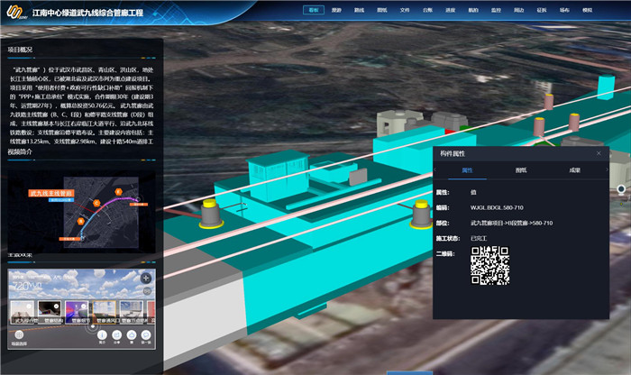 該平臺依托的江南中心綠道武九線綜合管廊項目地處長江主軸核心區(qū),其主線管廊起于友誼大道,止于建設(shè)十路,長約13.24公里;支線管廊起于武九鐵路,止于團結(jié)大道,長約3公里。該項目搭建的BIM設(shè)計管理平臺,整合了BIM模型及相關(guān)設(shè)計成果,功能涵蓋BIM模型瀏覽、VR全景漫游、圖檔查詢、進度展示、遠(yuǎn)程實時監(jiān)控等板塊,同時基于BIM平臺的移動應(yīng)用貫穿于全業(yè)務(wù)體系,屆時可實現(xiàn)工程進度動態(tài)展示、項目建成效果直觀可見、施工現(xiàn)場手機實時監(jiān)控,全面提升項目的數(shù)字化管理水平和工程整體質(zhì)量。