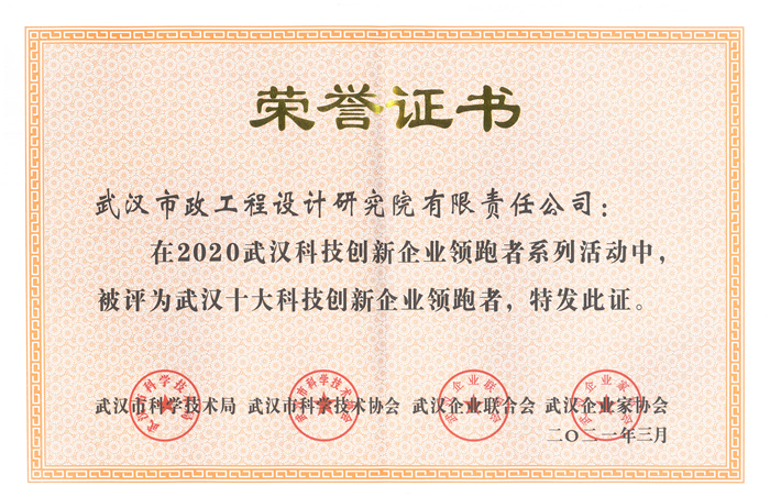 2021年4月15日,武漢創(chuàng)新與創(chuàng)業(yè)高峰論壇暨武漢科技創(chuàng)新企業(yè)領(lǐng)跑者系列活動頒獎盛典在武漢電視臺演播廳隆重舉行,武漢市政設(shè)計院榮膺“2020年度武漢十大科技創(chuàng)新企業(yè)領(lǐng)跑者”稱號,公司副總經(jīng)理周俊作為嘉賓上臺領(lǐng)獎。