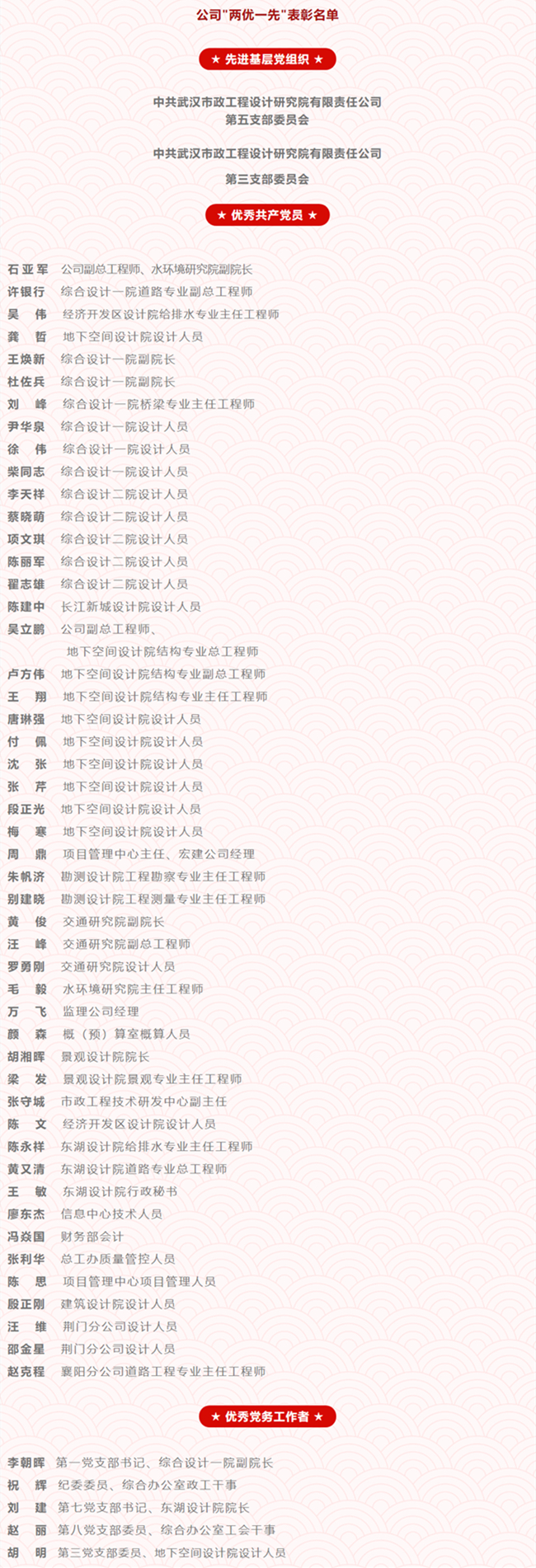 中共武漢市政工程設(shè)計研究院有限責任公司第五支部委員會榮獲市城投集團公司“先進基層黨組織”稱號。